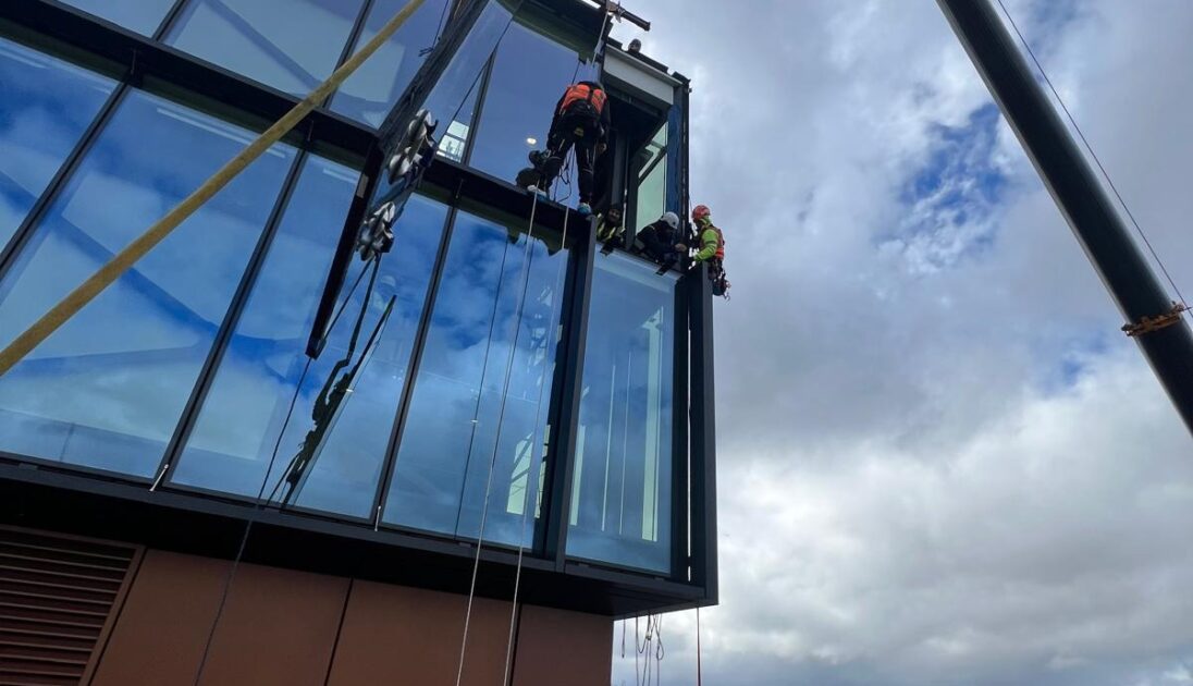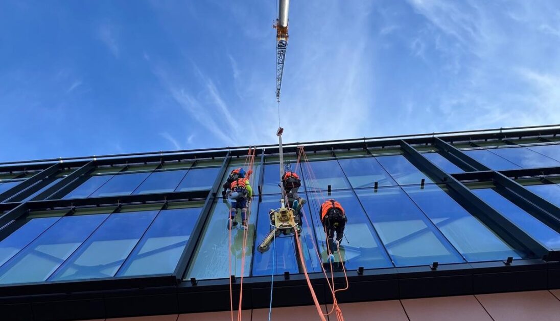 Rope access provided safe working conditions at the façade, while the crane lift enabled precise and controlled installation of the replacement units. Public protection measures and traffic management were implemented as planned, with no requirement or extension or repeat closures.