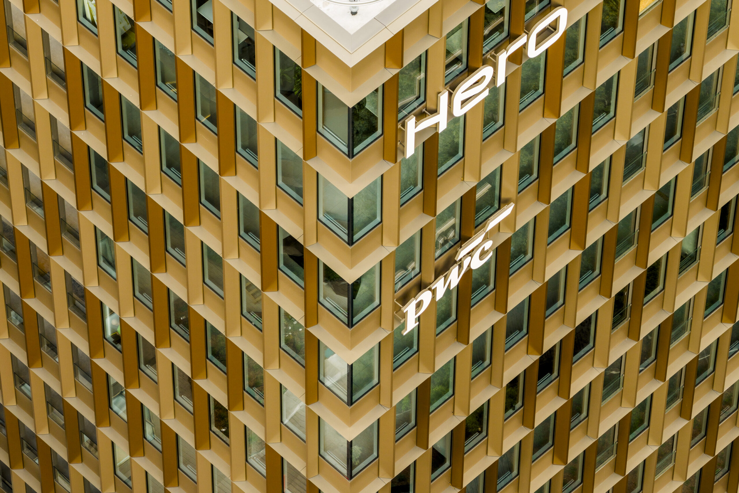 We are delivering 13,856 m² of unitised façade and 2,139 m² of stick façade. The complex architectural shape means that one-third of all the elements consist of segmented elements, and overall there are many different types of façade as the exterior composite finishes have many different angles. The outside cladding will be made of aluminum lamellas and composite lamellas.