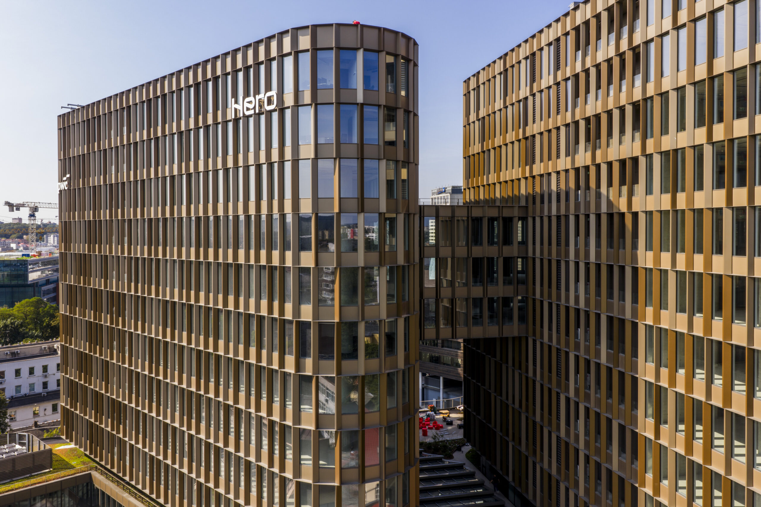 Delivering a 16 000 m2 façade in under 1 year for the Hero Business Centre will be a new landmark in Vilnius’ central business district. Comprising two towers connected by a 3-floor base section that will be home to shops and restaurants, this development has a strong focus on health and sustainability. The building will feature advanced air purification and humidification systems, with the project targeting WELL and BREEAM Excellent certification.